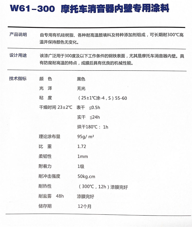 W61-300摩托車消音器內壁專用涂料